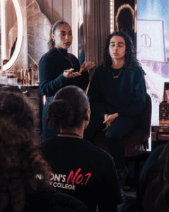 The session was inspired by Charlotte Tilbury’s Christmas collection and the brand’s signature iconic look. Throughout the day, students learned: